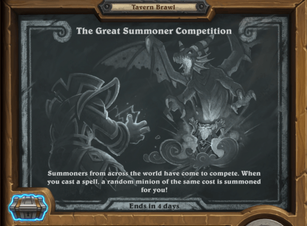 Kyseisen kunnian sai “The Great Summoner Competition”, eli viikko jossa spellit tuovat mukanaan randomilla samanarvoisen minionin. Ladatkaa siis druidinne ja maaginne (uudestaan) piippuun ja nujakan kimppuun.